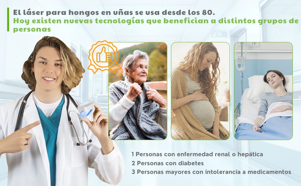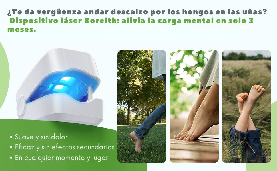 - Tecnología avanzada: Láser invisible de 905nm + luz azul de 470nm que repara uñas dañadas, engrosadas o decoloradas.