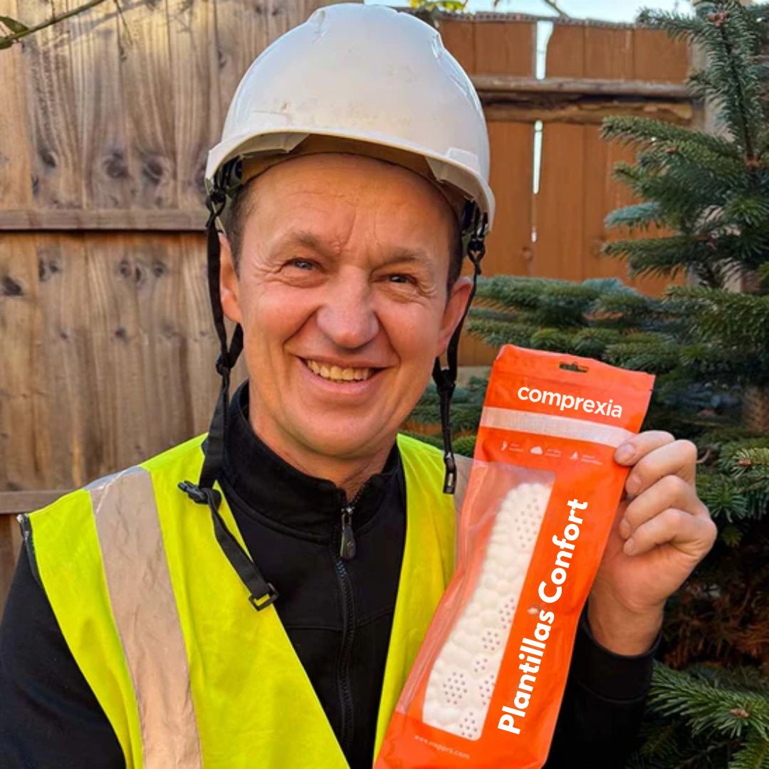Paso mis días en suelos de concreto con botas de punta de acero. Las plantillas de comprexia tienen una excelente absorción de impactos y soporte, reduciendo el impacto en mis pies y articulaciones. Estoy sorprendido de cuánto me han ayudado. Le he contado a todos en el trabajo sobre ellos.